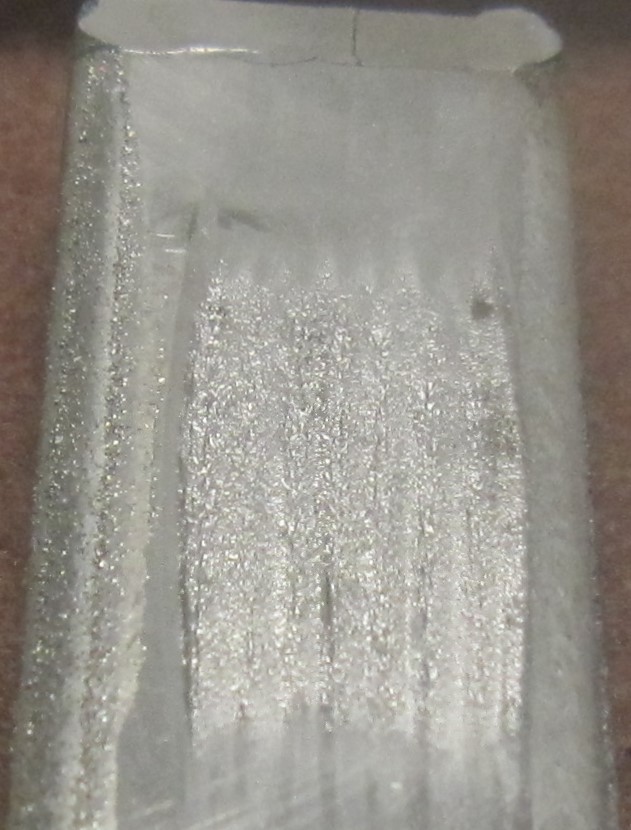 One can see a periodic wear pattern that correlates to the weld step over distance of the Laser hard facing process parameters. It should be noted that the G-65 test for WC hard facing is very unpredictable and not reliable, because the silica sand [SiO2] does not abrade the WC at all, and only affects the metal matrix. Therefore, the wear results [mass loss] are highly dependent on the weld overlay process parameters i.e. the orientation of the weld deposits with respect to the flowing direction of the slurry.